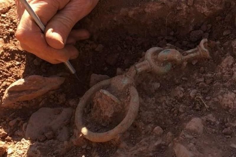 High-ranking chiefs of the Iron Age normally got buried with their horses, chariot, tack, and weapons. During the excavation, they found the tops of a set of chariot wheels. “Often the wheels were laid flat,” Mike explained.
