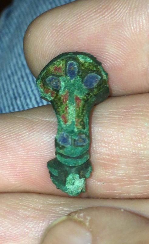 He had to abandon the piece of equipment, pull out a trowel, and then start to dig. The wet dirt did not stand a chance, and he soon found a round chunk of metal in the soil.