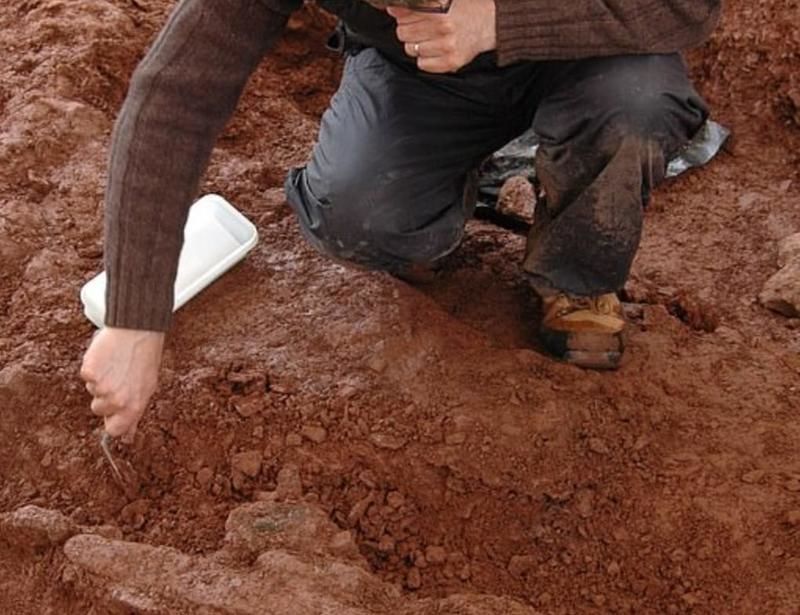 The trowel then hit a smooth surface. He could not stop his eyes from going wide when he wiped off the dirt and found something brown and hard.